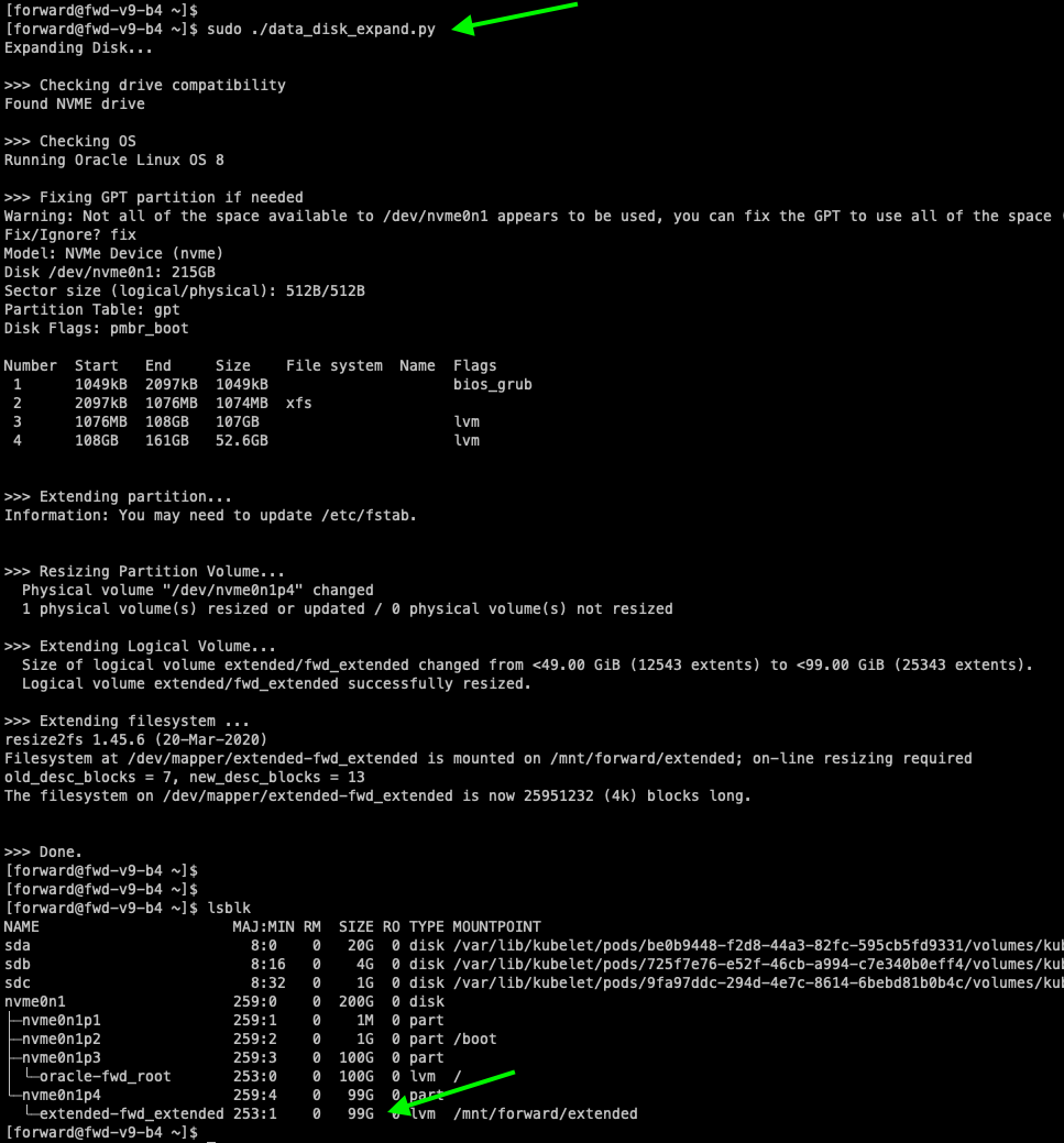 Once the EBS volume is modified SSH into the node and verify the disk size using the command