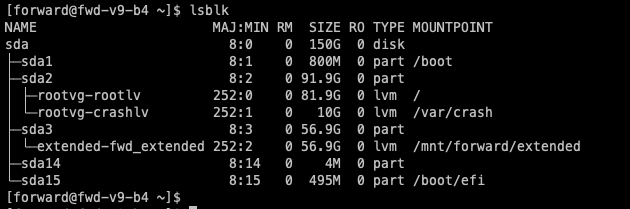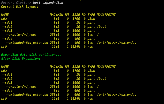 fwd-clusterutility and execute the below command:Forward Cluster> host expand-disk